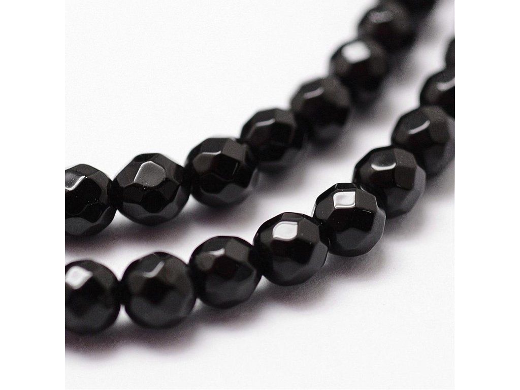 Korálky černý onyx fasetované 4 mm, 15 ks