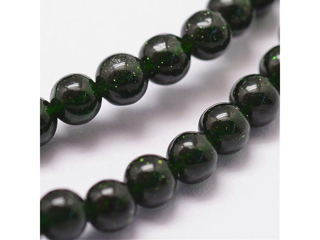 Korálky goldstone zelený jsou vhodné pro tvorbu náramků, náhrdelníků i náušnic. Každý kus je díky přírodnímu nebo dekorativnímu vzhledu jedinečný. Goldstone je vnímaný jako kámen motivace a energie. Dobře se kombinuje s černým onyxem nebo hlubokými zelenými tóny. Má efektní třpytivý vzhled.Diskuze