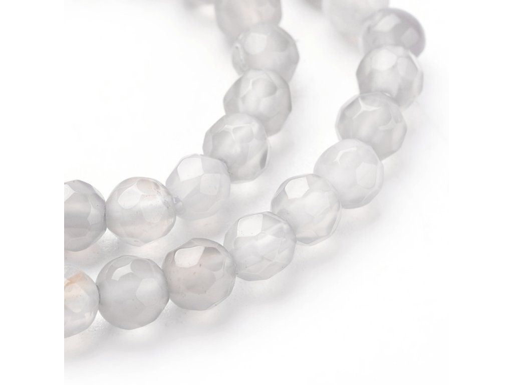 Fasetované korálky z šedý achát působí elegantně, moderně a díky broušení krásně odrážejí světlo. Achát je tradičně spojován se stabilitou, rovnováhou a ochranou. Krásně se kombinuje s černými, bílými i stříbrnými doplňky. Neutrální odstín se hodí do elegantních šperků.