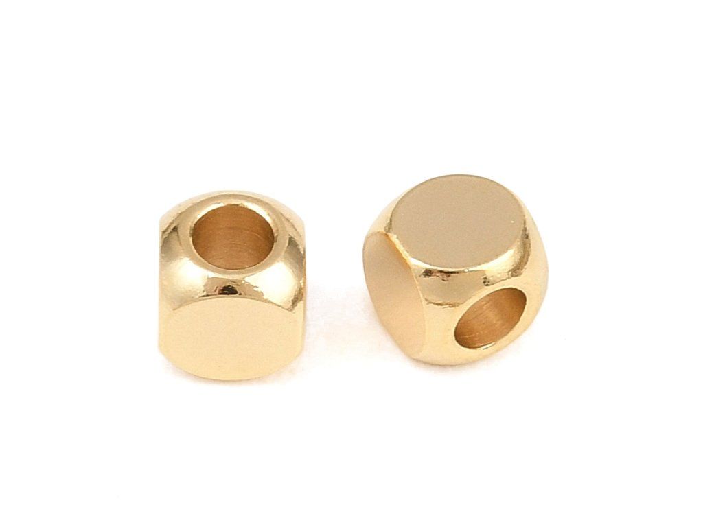 Kostkové korálky z chirurgické oceli (zlaté), 10 ks