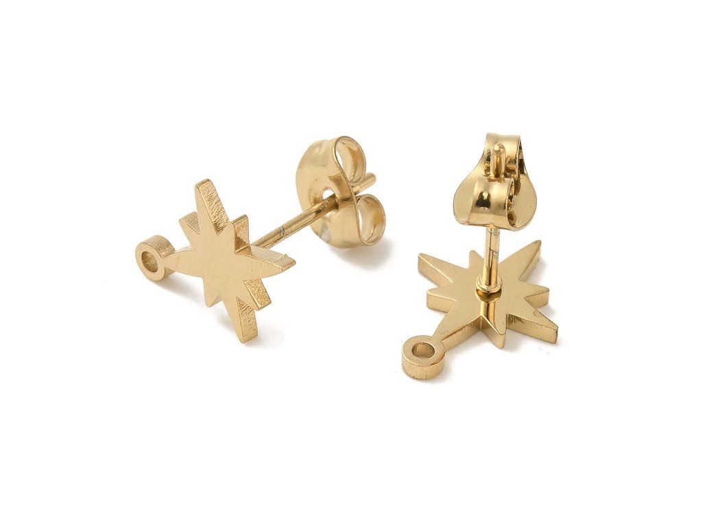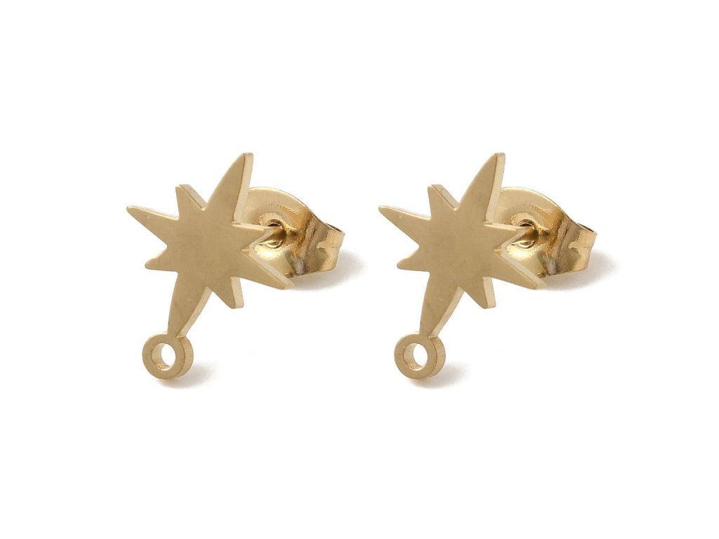 Náušnice pecky hvězda z chirurgické oceli (zlaté), 1 pár