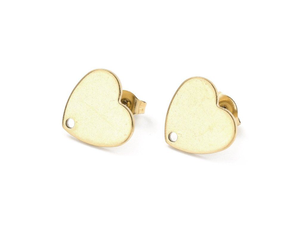 Náušnice pecky srdce z chirurgické oceli (zlaté), 1 pár