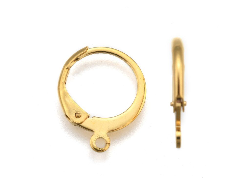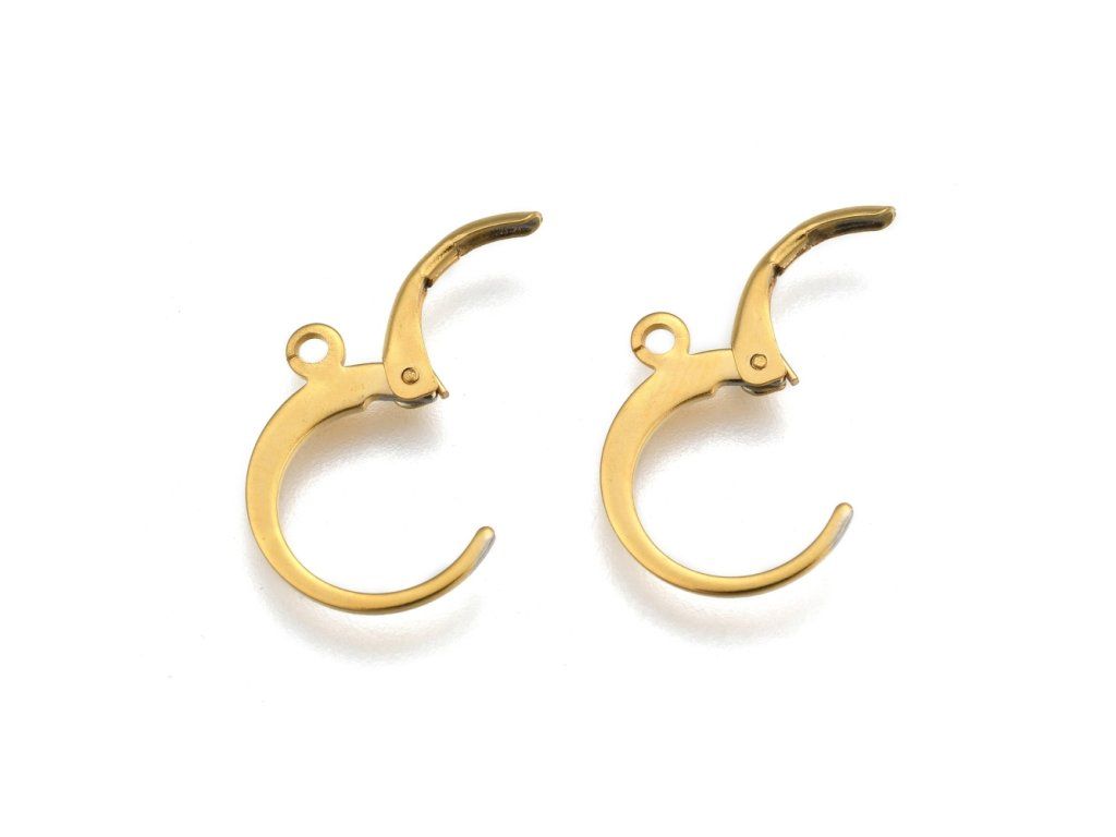 Náušnice zapínání leverback z chirurgické oceli (zlaté), 1 pár