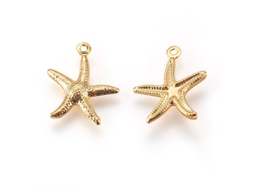 Stylový přívěsek ve tvaru hvězdice z chirurgické oceli s pravým 18K zlatým pokovováním. Díky jemnému detailnímu zpracování působí lehce, elegantně a přirozeně – ideální pro šperky inspirované mořem a letní atmosférou.