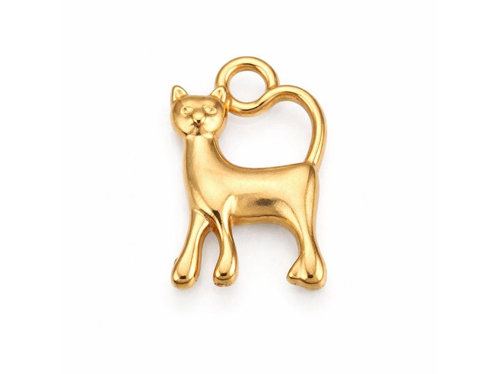 Přívěsek kočka z chirurgické oceli (zlatý), 1 ks, 17 mm