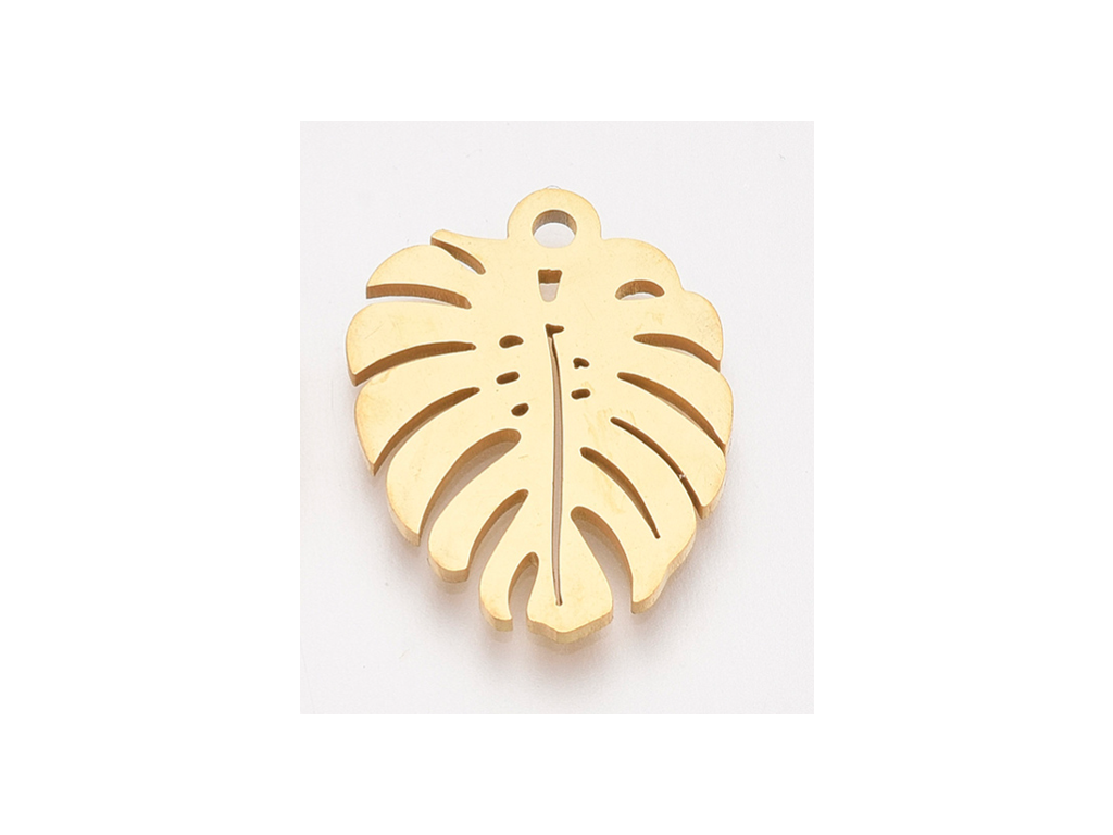 Přívěsek list z chirurgické oceli (zlatý), 1 ks, 17 mm