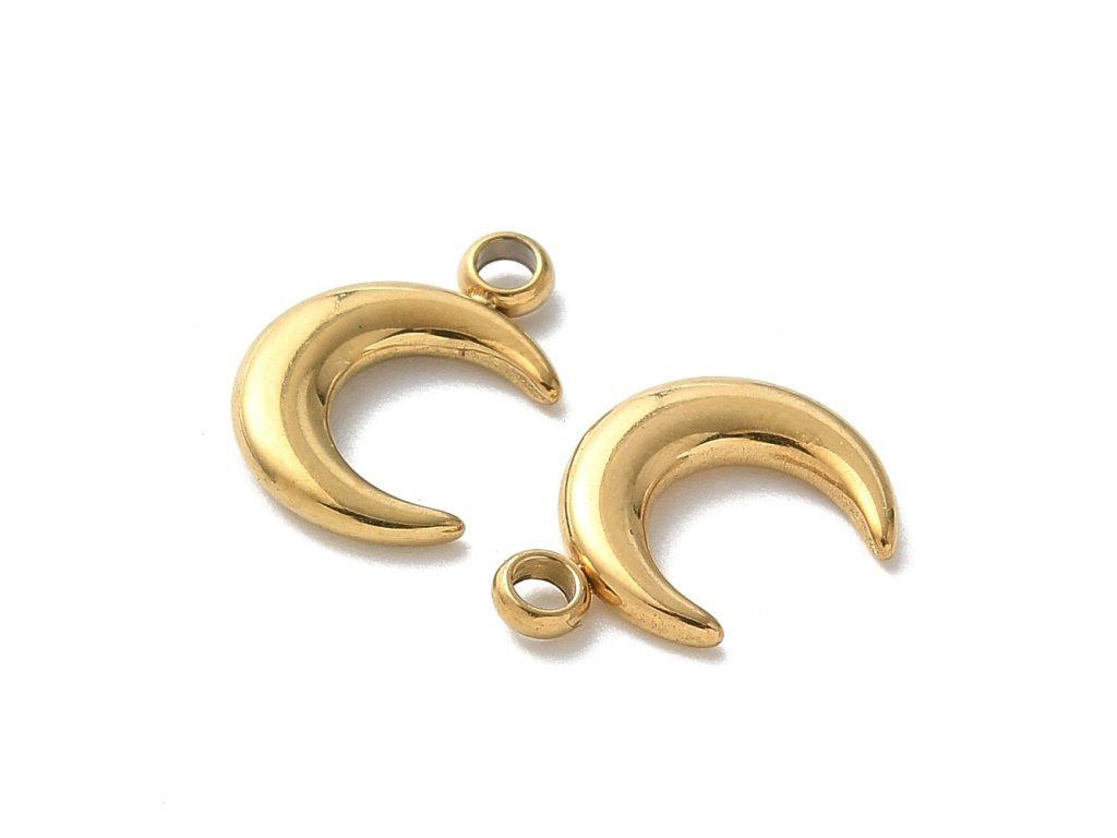 Přívěsek měsíc z chirurgické oceli (zlatá), 1 ks, 13 mm