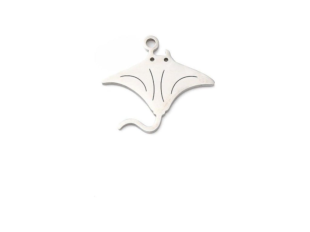Přívěsek rejnok z chirurgické oceli (stříbrný), 1 ks, 18 mm