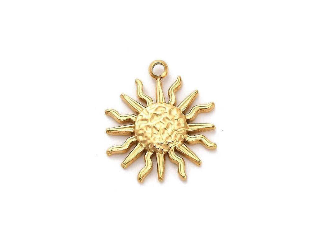 Přívěsek slunce z chirurgické oceli (zlatý), 1 ks, 16 mm