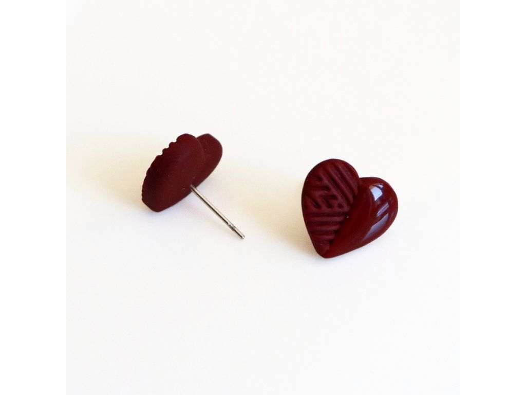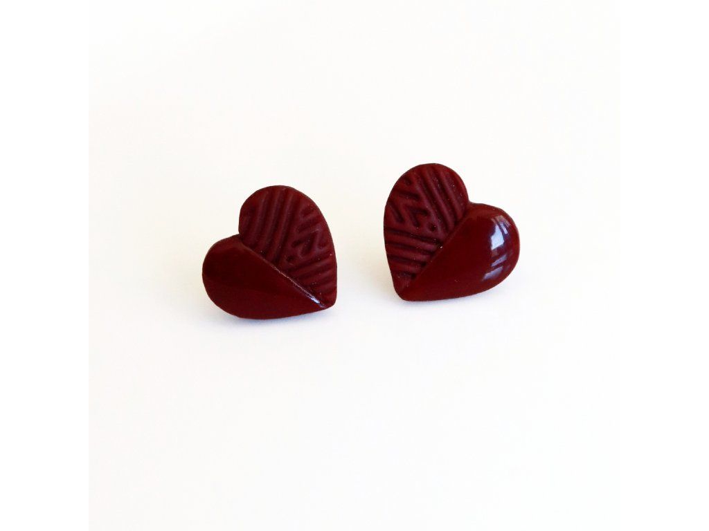 Originální náušnice ve tvaru srdce ručně vytvořené z polymerové hmoty. Díky kombinaci hladkého lesklého povrchu a jemné struktury působí hravě, ale zároveň elegantně – ideální pro každodenní nošení i jako výrazný doplněk.